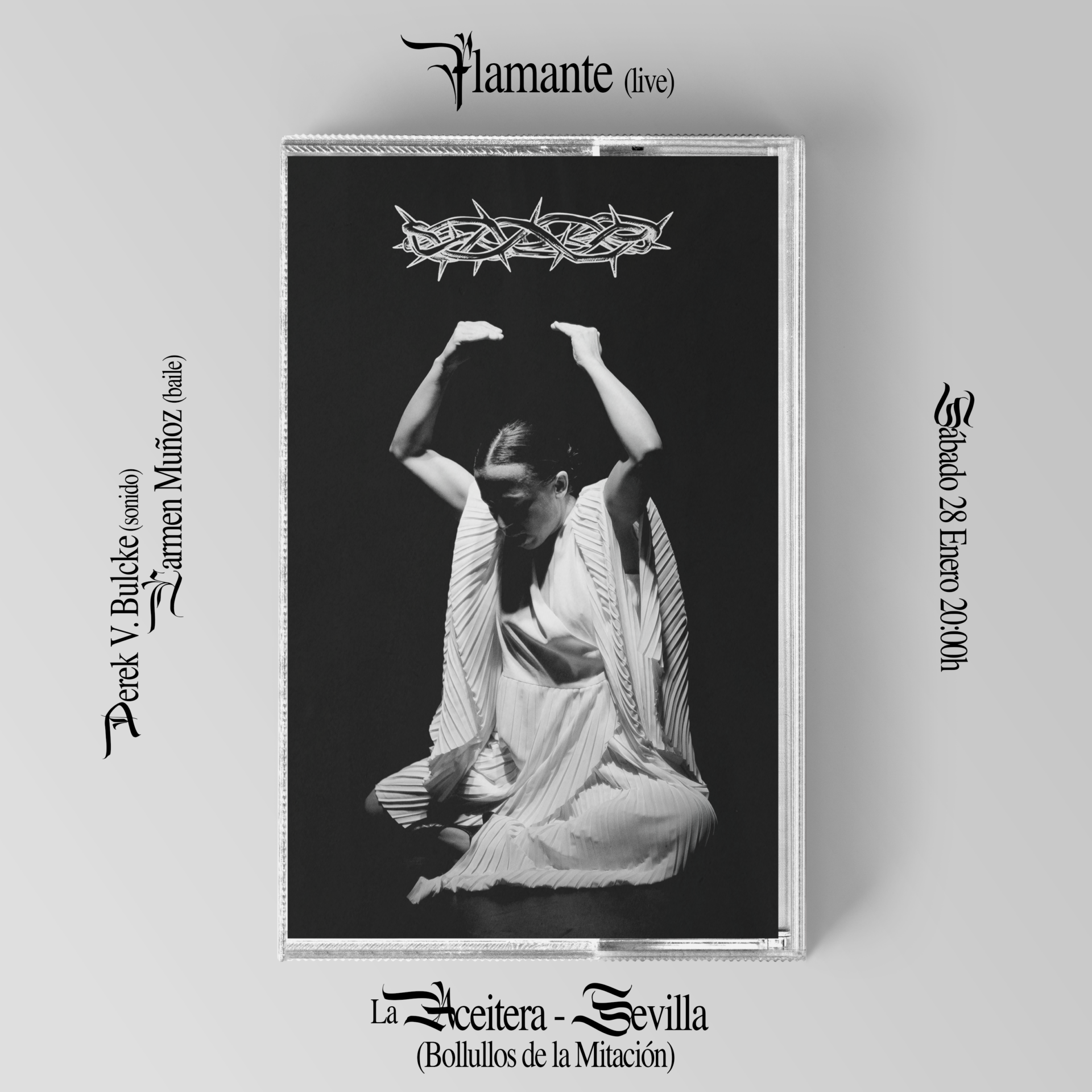 Y La Aceitera arrancó 2023 de una forma explosiva e incombustible con: F L A M A N T E, un proyecto de investigación musical y experimentación sonora en torno al flamenco, realizado por el artista Derek Van Den Bulcke, con el acompañamiento de danza de la granadina Carmen Muñoz.