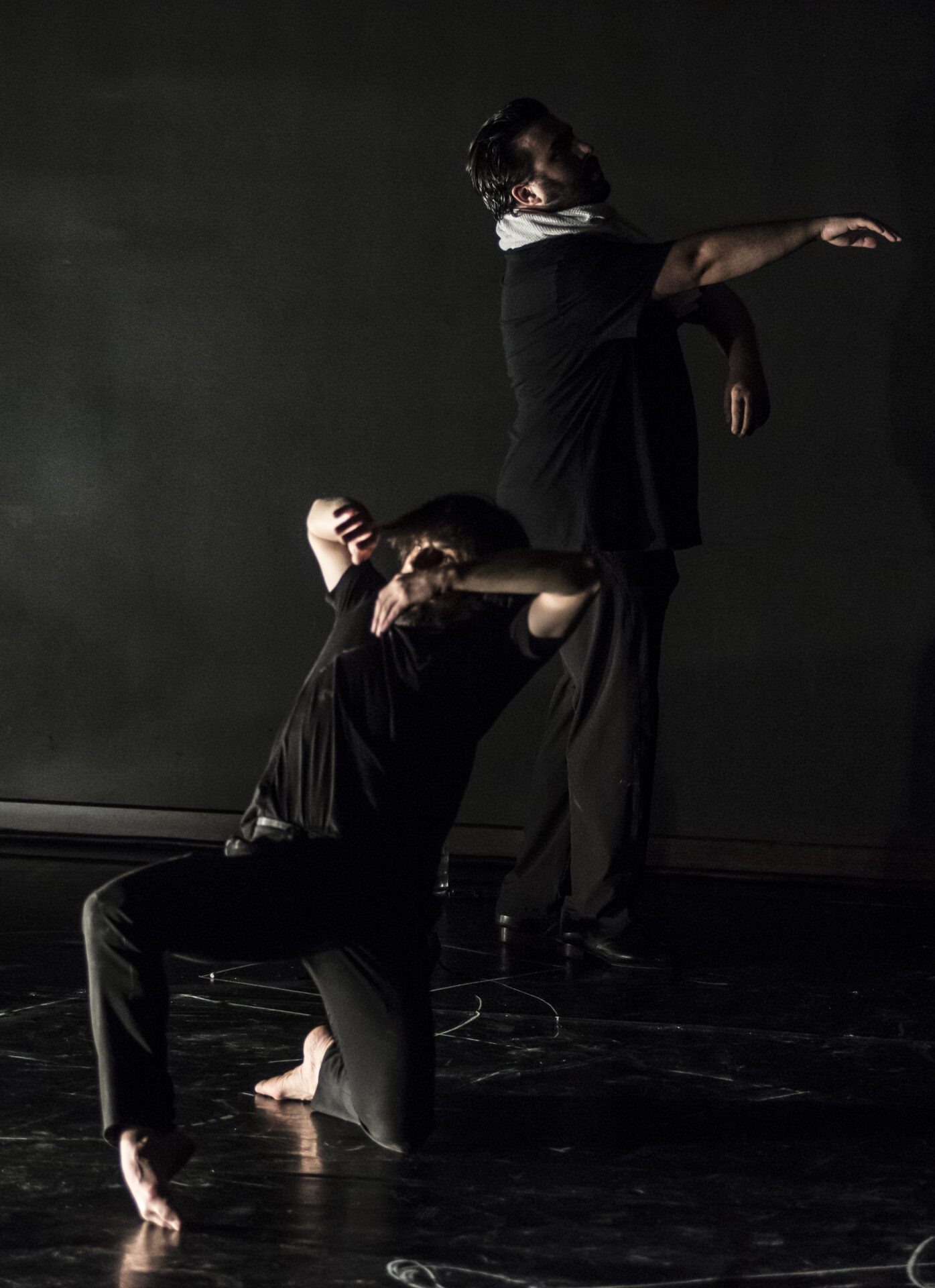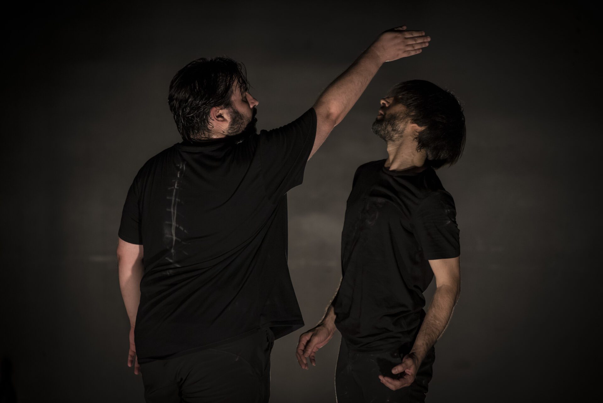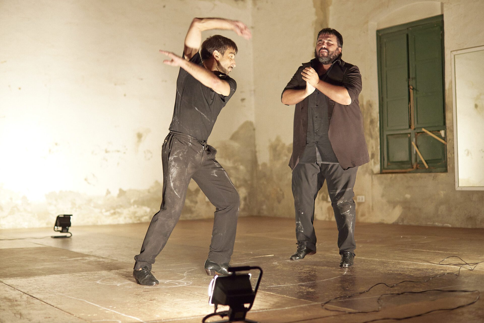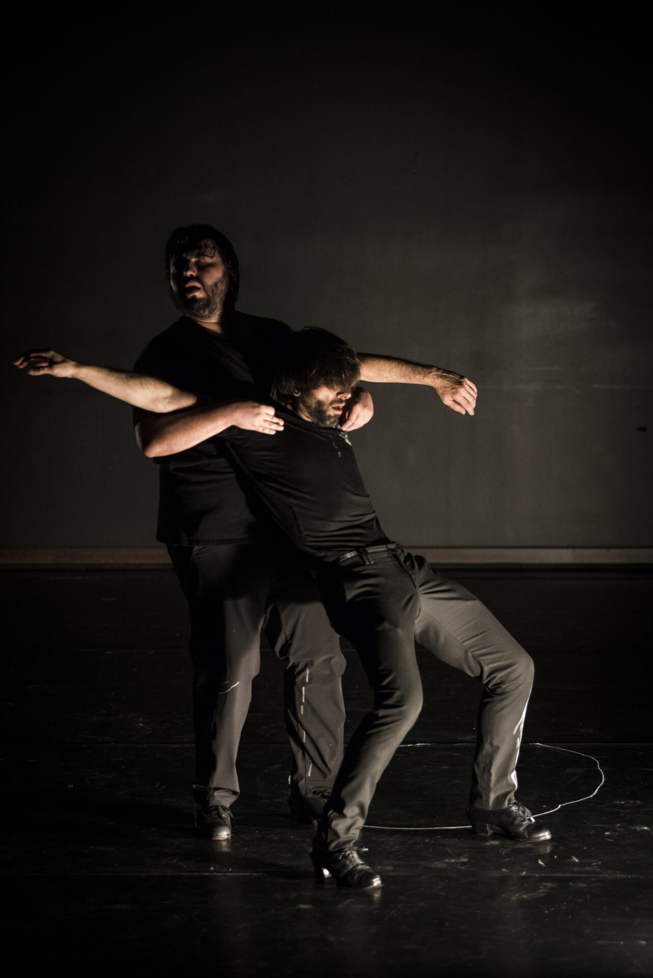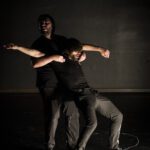 Estévez en el silencio agudo del sistema nervioso de Paños comprendiendo los cortocircuitos de un cuerpo que trabaja hasta la extenuación si es necesario, por la búsqueda de la belleza, de la definición y el perfeccionamiento del movimiento infinito, armónico, sensible y estilizado… Paños en el silencio grave de Estévez, el de los recorridos de la masa de su sangre que se ralentiza densa como la miel, cargada de ancestros de procedencias inimaginables y de una intuición y afinidad con tiempos pasados, que por edad no le ha tocado vivir, pero que son la base de su lenguaje de danza. Los dos desde la quietud y desde la danza, desde el sonido y el silencio, desde lo pasado y lo presente… desde nosotros mismos.